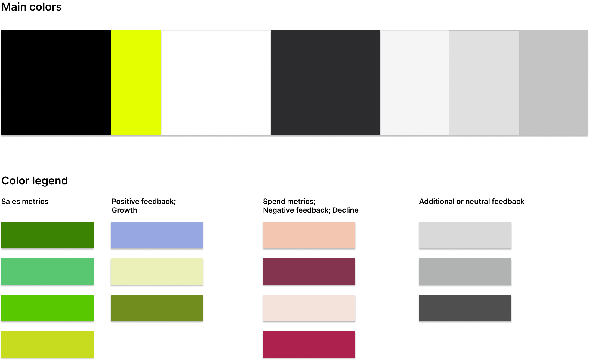 The new main site was designed by our partner company, and while using contemporary UI trends and being approved by the stakeholders, it had a different purpose than the client portal. It presented a challenge for designing the portal, because of the use of colors that were close to red and green - the colors that have a very distinctive purpose in marketing, usually representing growth and decline, or alarming metrics. In addition, some of the colors were highly saturated and contrasted, and hard to look at for a longer period of time, as user might do while looking at our dashboard.